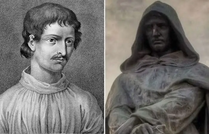 Во-первых, Бруно вряд ли можно было назвать молодым. На сохранившейся гравюре XIХ в. Ноланец (по месту рождения – итальянский город Нола) действительно выглядит молодо, однако на момент казни ему было 52 года, что по тем временам считалось весьма преклонным возрастом. Во-вторых, едва ли его можно называть ученым. Джордано Бруно был странствующим доминиканским монахом и философом, исходил всю Европу, преподавал во многих университетах (откуда его нередко со скандалом изгоняли за еретические суждения), защитил две диссертации.