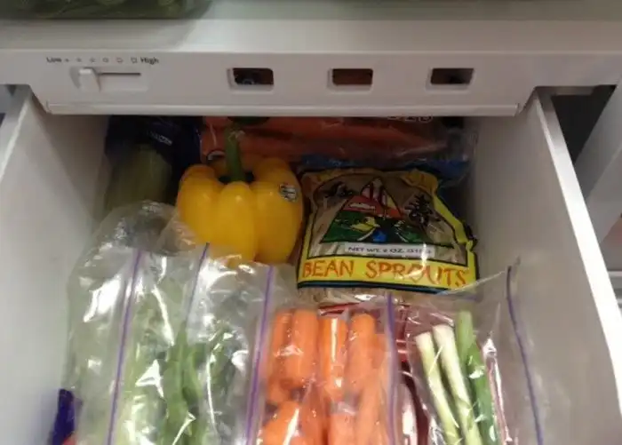 На дно ящика для овощей в холодильнике постелите бумажные полотенца. Они поглощают лишнюю влагу и не допускают таким образом быстрого загнивания овощей.