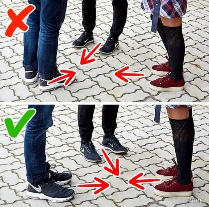 Стопы человека во время разговора помогут выяснить отношения к собеседникам и скрытые эмоции. Если вы подходите к людям и они поворачиваются только корпусом тела, а положение ног сохраняется прежним, то они к вам явно не расположены.