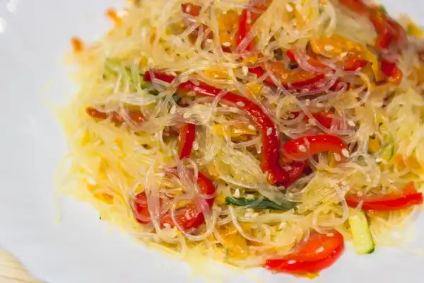 Всем привет! До Нового Года осталось совсем немного времени, а это значит, что уже пора определяться с новогодним меню! Эти ближайшие две недели я планирую делиться с вами своими проверенными рецептами блюд, которые отлично подойдут к новогоднем праздничному столу. Сегодня это будет салат из фунчозы с овощами! Этот салат довольно сильно отличается от всех тех, что мы привыкли видеть на своих столах, но вкус у него просто потрясающий! Я думаю, он заслуживает того, чтобы вы его приготовили и попробовали для себя что-то новенькое!