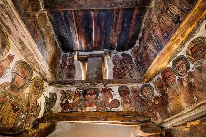 Церковь, высеченная в период правления императора Йэкуно Амлака (1270-85), хранит самые ранние фрески в Эфиопии, которые, предположительно относятся к концу 13-го века. Здесь можно увидеть сцены из Ветхого Завета и изображения святых, а также сюжеты из Нового Завета. На этой фотографии видна крыша церкви, украшенная высеченными крестами.