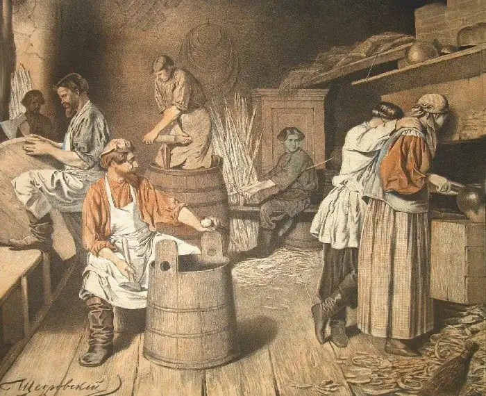 В давние времена широко была распространена профессия бондаря, которая почти сошла на нет в 20 столетии, а на сегодняшний день их практически не осталось. Однако в свое время количество бондарей доходило 1000 человек в каждой губернии. Сколачивать бочки довольно кропотливое и сложное дело: дощечки должны прилегать настолько плотно друг к другу, чтобы они не пропускали воду. Поэтому профессиональные бондари в старину ценились очень высоко.
