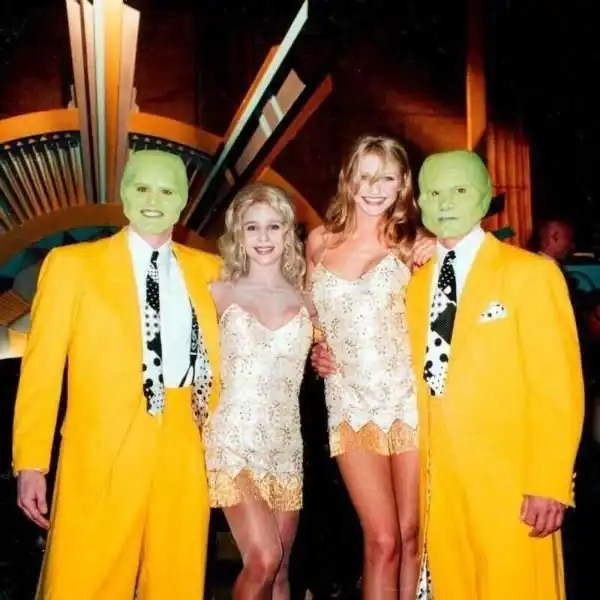 10. Джим Керри и Камерон Диас с дублерами на съемках «Маски», 1994 год, США.