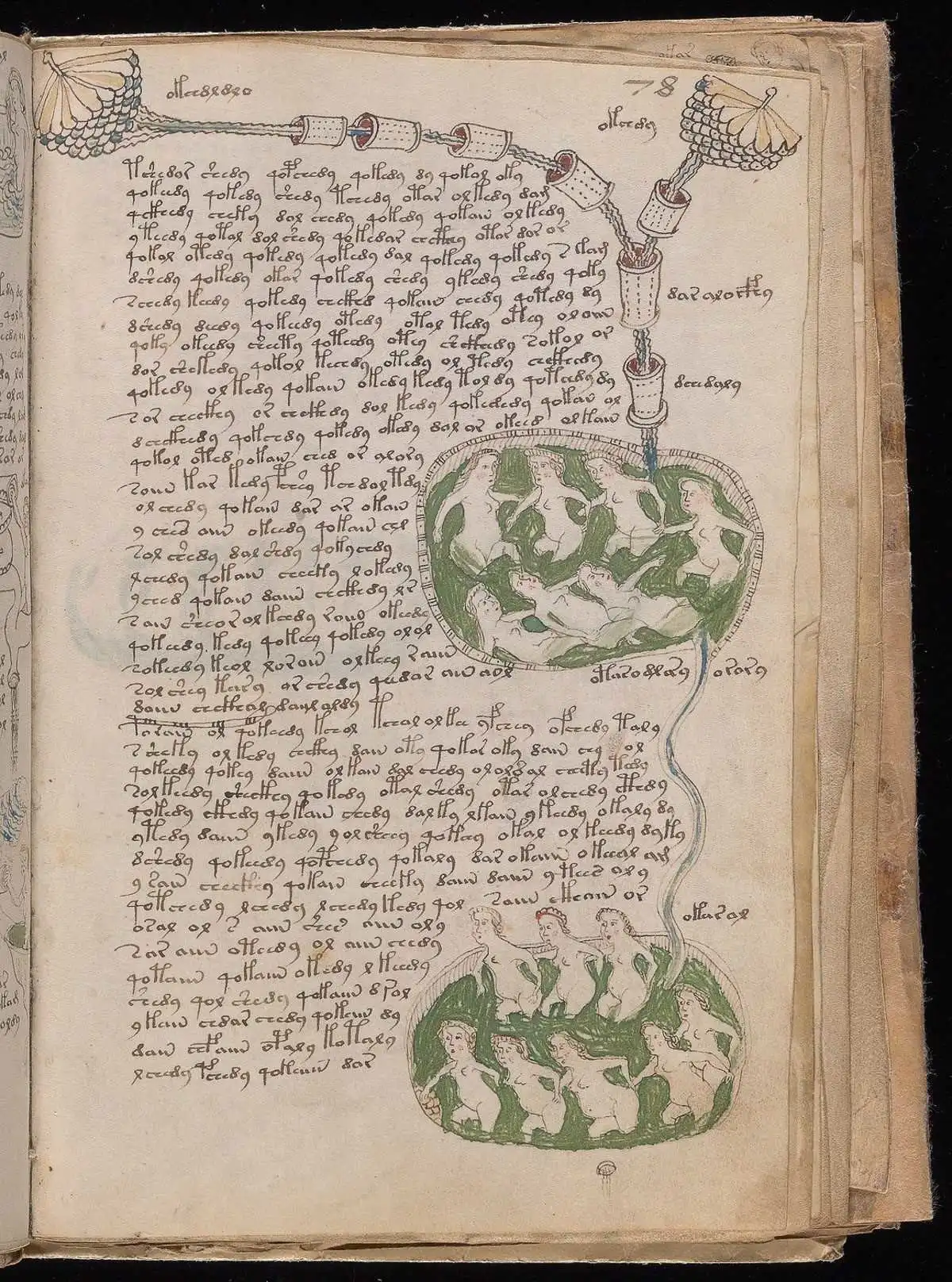 Согласно углеродному анализу, кодекс со страницами размером 16,2 на 23,5 см был создан в первые десятилетия 15-го века и, как полагают, происходит из севера Италии. Считается, что это какой-то документ о здоровье женщин, но поскольку он написан на неизвестном языке и зашифрован неизвестным кодом, никто не может сказать точно, что же на самом деле в нём содержится.