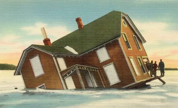 Он купил этот дом и загорелся идеей перенести здание с одного берега озера на другой. Думая, как это можно сделать быстрее всего, ЛеКонт решил: пускай вода озера замерзнет, и тогда дом можно будет просто передвинуть по льду.