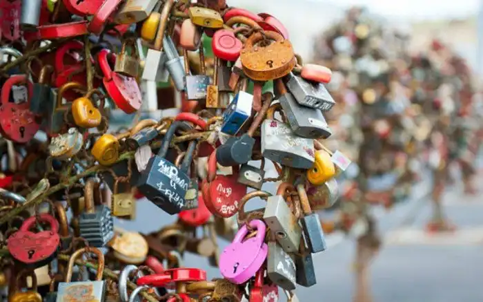 35. В Москве есть деревья, обвешанные железными замками, — пары оставляют их здесь, чтобы доказать свою любовь.
