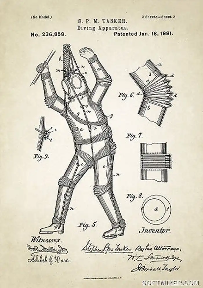 Надо сказать, что к тому моменту, моряки уже использовали мягкие водолазные костюмы. А первый жесткий скафандр с системой поддержания давления был запущен в производство 1900 году, но это была разработка не Стивена Таскера.