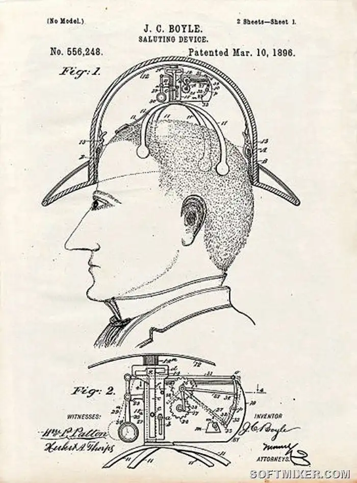 Но некоторым и этот простой ритуал показался слишком утомительным. Господин Бойл придумал и запатентовал устройство, приподнимающее шляпу без рук. То есть подходишь к даме, а ручки-то вот они!