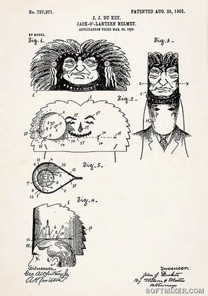 То есть подразумевается, что человек будет ходить в темноте и пугать прохожих рожей индейца с горящими глазами. Чувствуете беспечность в работе с огнем? Видимо из-за таких поделок другие изобретатели так много внимания уделяли противопожарным средствам.