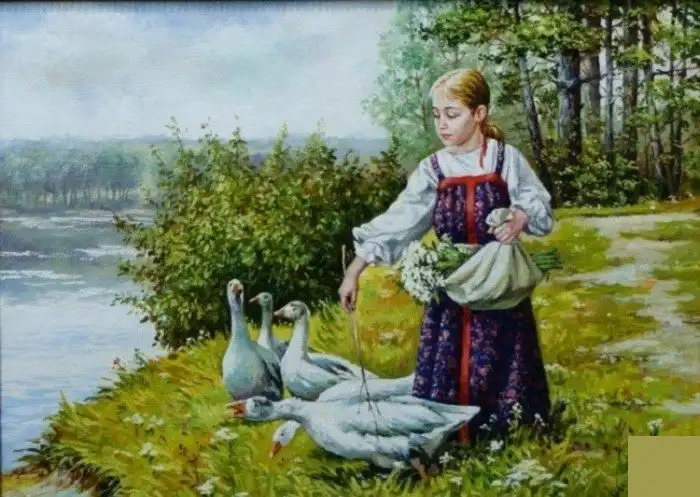 Множество было обязанностей для маленькой хозяюшки и в не дома. Ей приходилось вязать снопы, собирать колоски, ворошить сено; сажать рассаду, полоть сорняки и поливать огород; пасти корову, козу, гусей, уток; убирать навоз и чистить скотину.