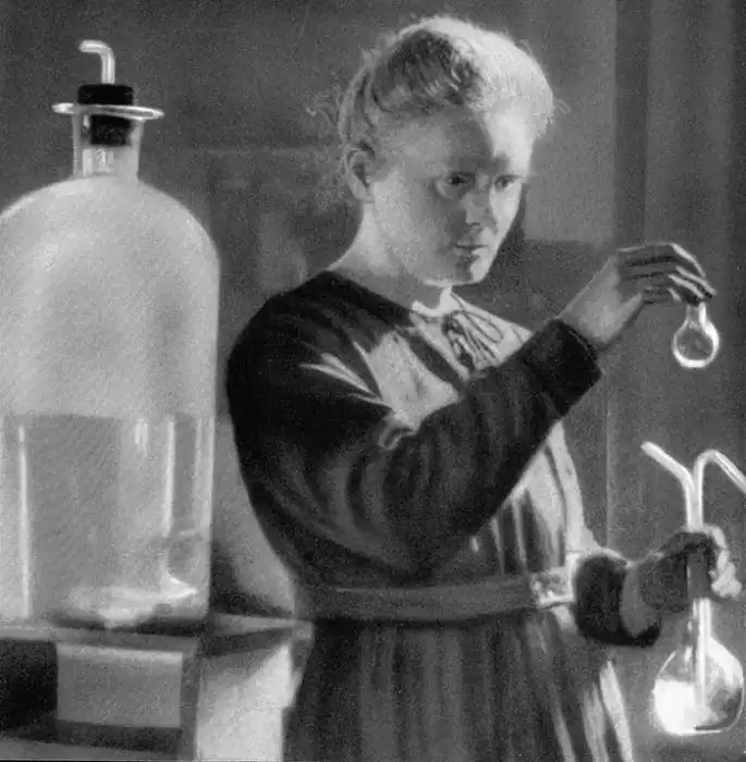 Большинство исследований Марии Кюри были посвящены теории радиоактивности. В числе ее достижений – открытие таких радиоактивных элементов, как радий и полоний (последний назван в честь родины Марии Кюри – Польши). К сожалению, о разрушительном влиянии радиации на тело человека в то время не было ничего известно, и Мария во время опытов в лаборатории не использовала специальную защиту.