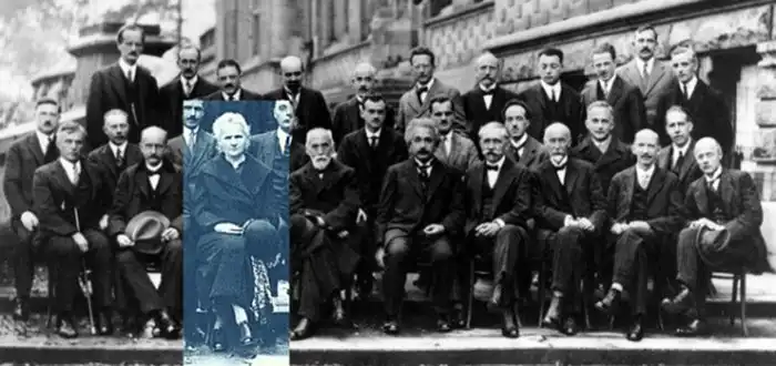 Мария Кюри среди участников конференции о квантовой механике, 1927 год.