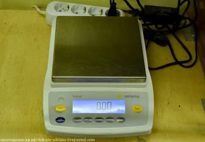 На весах взвешиваются детали и заготовки после каждой операции, на каждом этапе идет строгий учет драгоценного металла