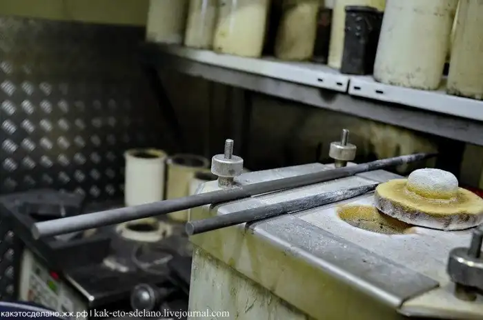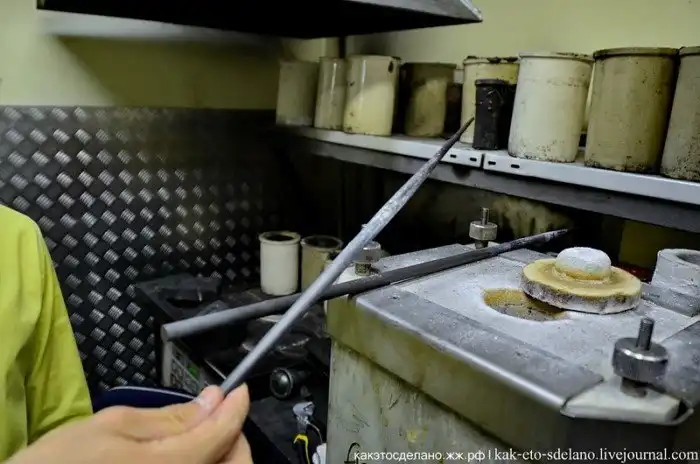 «Супчик» из драгоценных металлов время от времени перемешивается таким графитовым стержнем, который понемногу становится тоньше.