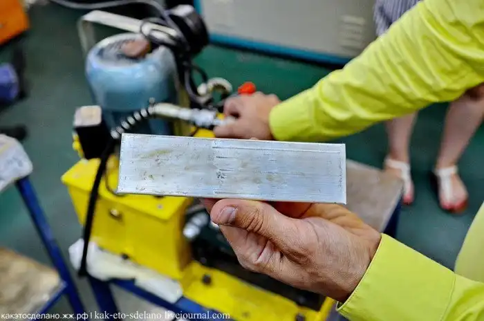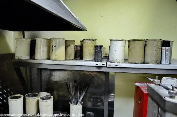 Драгоценный металл хранится в соседней комнате, а здесь специалисты проверяют пробы сплавов, которые также производятся на заводе.