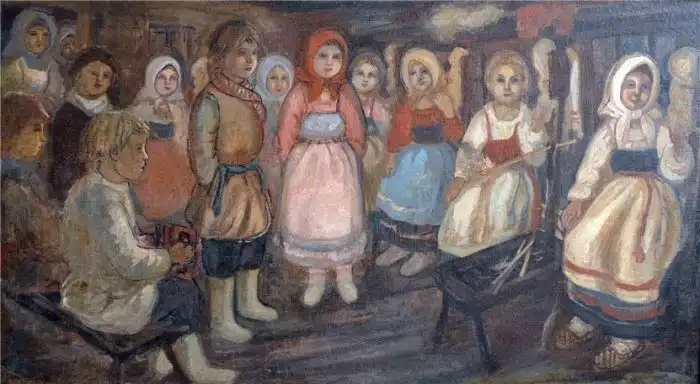 Популярна была и «веревочка» – парни и девушки брались за руки и принимались водить хоровод по сложной траектории, при этом все пели песни. Можно было отцепиться от веревочки, присесть у стены, а потом снова принять участие. Молодежь пела, играла на музыкальных инструментах. До сих пор известны жмурки и колечко, которые на посиделках очень любили.