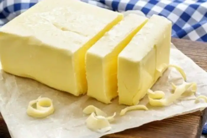 Реальное сливочное масло не будет «телевизионного» желтого цвета. Оно белое, с легким оттенком кремового. Качественное масло должно быть твердым, при намазывании оно не крошится, а ложится на хлеб однородным слоем.
