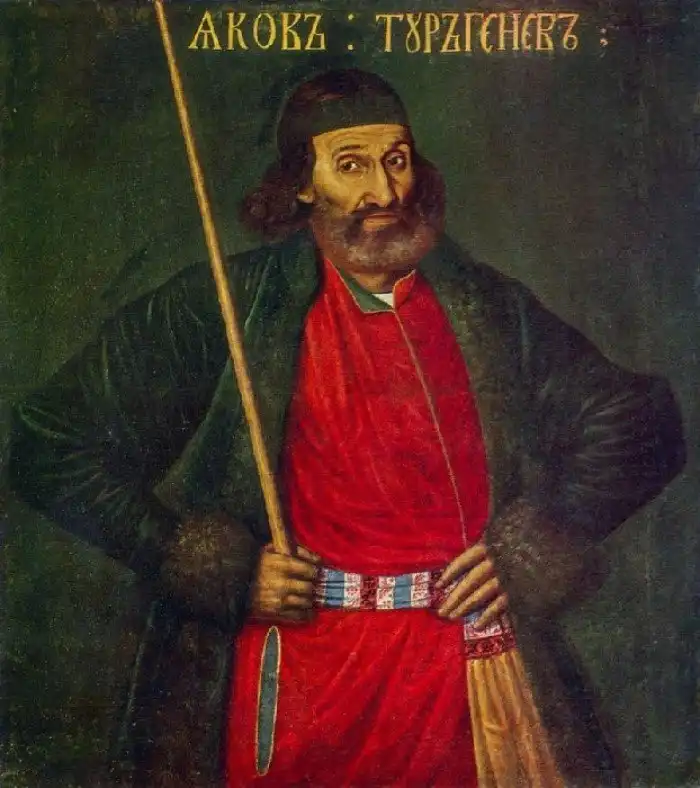 Трагическим был конец Якова Тургенева, погибшем в 45-летнем возрасте во время жестокой забавы Всепьянейшего собора в селе Кожухов, где проводились буйные петровские развлечения. С членами «собора» царь кутил и праздновал все свои победы, устраивал маскарадные шествия и шутовские праздники.