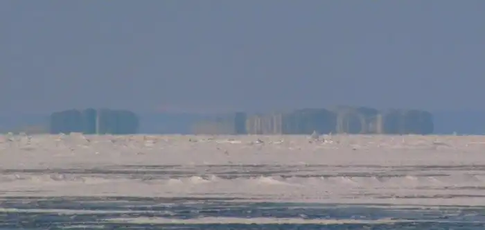 Миражи бывают не только в пустынях, но и на просторах Байкала. Местные жители частенько видят здесь замки, затонувшие суда и целые острова. Ученые полагают, что вода озера остается в глубине холодной даже жарким летом — в такое время перепад между разными плотностями слоев воздуха преломляет солнечные лучи особым образом, пугая людей невиданными картинами.