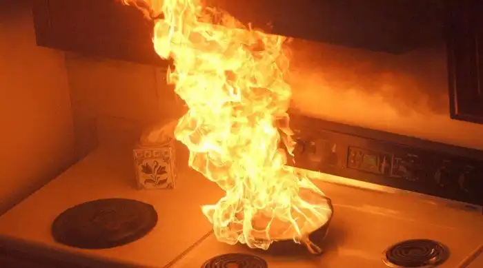 Никогда не используйте воду, если на плите начался пожар. Молекулы воды опускаются на дно горячей кастрюли, мгновенно испаряются и еще больше поднимают пламя. Используйте одеяло: накинув его на огонь, вы лишаете пожар доступа кислорода.