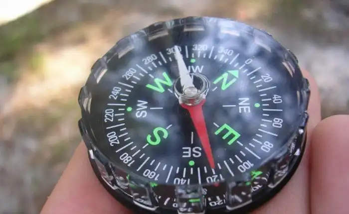 Итак, теперь пора понять, где какая сторона света. Это легко: расположите компас на ровной поверхности, позаботившись убрать подальше магниты и металлические предметы. Острая часть стрелки покажет на север. Соответственно, позади будет юг, слева запад, справа восток.