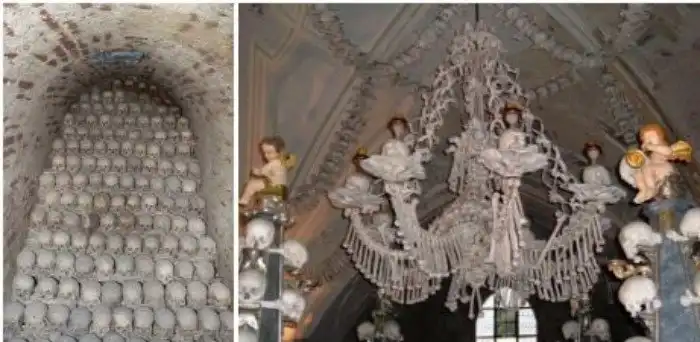 Такая церковь-усыпальница решала проблему нехватки места для захоронений. Скелетные останки захороненных тел выкапывались и переносились в подземные склепы, называемые оссуариями. Так можно было хранить гораздо больше останков. Интерьер таких склепов полностью отделан человеческими черепами и костями, которые служат своеобразным строительным и отделочным материалом для создания сложных декоративных скульптур — таких как арки, люстры, иконостас, гирлянды, кресты и дароносицы. Кости десятков тысяч усопших компактно разместились здесь. Склеп Брно в Чешской Республике является вторым по величине в Европе.