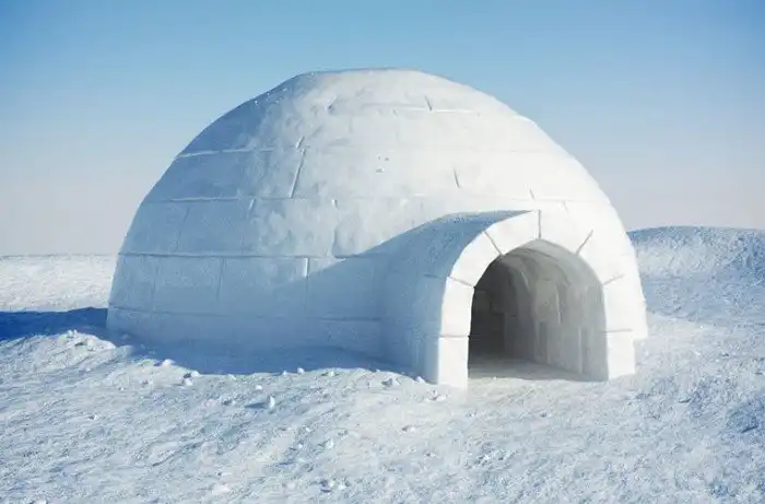 В настоящих иглу всегда сухо, свежо и тепло — главное, построить правильно. Иглу делают из блоков льда или утрамбованного снега, которые укладываются по спирали. Форма их должна быть разной, так как жилище сужается кверху (полукруглое иглу лучше противостоит ветру, а еще оно более вместительное). Вход должен быть устроен ниже уровня пола — это обеспечивает отток углекислого газа и приток более легкого кислорода, а также не позволяет уходить теплому воздуху. В итоге в иглу устанавливается весьма комфортная температура. А еще такое помещение отлично впитывает излишнюю влагу, поэтому здесь всегда сухо. В иглу даже можно установить «нагревательные» и «осветительные» приборы — плошки-сальники. Стены от них слегка оплавятся, но не растают — лишнее тепло все равно выводится через снег на улицу.