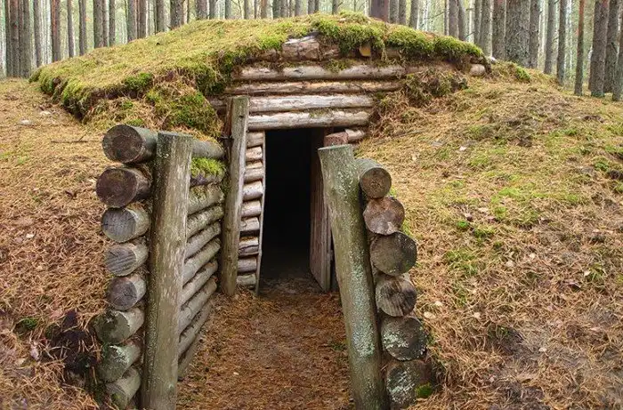Приблизительно до X века наши предки жили в землянках — предшественниках избы. Дом был незамысловат: в земле рылся котлован — на высоту или половину высоты стен, далее укладывалось три-четыре ряда бревен, внутри сооружался очаг из камней и глины. Вся постройка покрывалась покатой крышей из соломы. На месте двери — отверстие примерно метр на метр, прикрываемое парой бревенчатых половинок, связанных вместе, и пологом. Пол — земляной. Его сначала проливали водой, а когда земля высыхала, подметали.