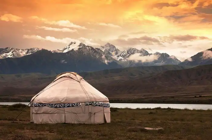 Первые изображения частей юрты датируются серединой I тысячелетия н. э. Но зарей строительства таких жилищ считается XIII век. Юрта — это, по сути, большая складная и очень удобная «палатка», в которой можно разжигать очаг, ведь на крыше ее имеется специальное круглое отверстие для выхода дыма и просто освещения, которое в случае дождя или на ночь закрывается войлоком — достаточно потянуть за аркан. Каркас юрты сделан из складывающихся гармошкой решетчатых деревянных жердей, в которые продеваются длинные одиночные жерди, составляющие купол. Сверху настилается кошма — войлочная ткань, покрывающая все сооружение: благодаря ей в юрте всегда тепло и не дует, а если жарко, можно убрать боковую кошму. Внутри такое жилище застилается коврами и условно делится на две неравные половины: большую мужскую (у монголов это восток) и маленькую женскую (запад) — между которыми натягивается занавесь. На первой по стенам развешивают оружие, конскую упряжь и талисманы. На одится утварь, пищевые припасы, женская и детская постель и одежда. У двери располагался посудный шкаф и ступа для взбивания кумыса — символ достатка. Многие монголы живут в юртах до сих пор, а в Казахстане, к примеру, их сооружают в честь национальных праздников или для туристов.