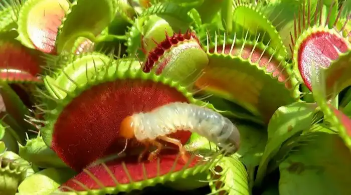 Растение-клетка, охоту которого можно заметить и невооруженным глазом. Даже листья венериной мухоловки выглядят как пасть неведомого чудовища: колючки выполняют роль решетки. Этот зеленый хищник буквально растворяет своих жертв заживо — такого и в фильмах ужасов не показывают.