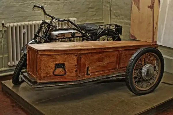 Житель графства Норфолк прикрепил к мотоциклу фирмы Norton деревянную платформу, на которую для наглядности поместил пустой гроб. Мужчина хотел обеспечить дешевый и быстрый способ доставки тел усопших к месту захоронения. Со временем у других фирм появились полноценные мотоциклы-катафалки, а самодельный экземпляр не решились использовать по назначению, так как посчитали его потенциально небезопасным.