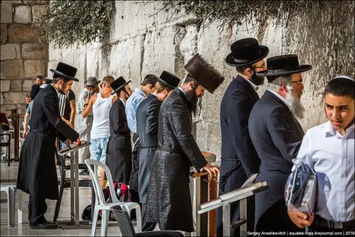 Если вы думаете, что они все одинаково черно-белые, то очень ошибаетесь. Оказывается, только черных шляп существует 34 вида, каждый из которых несет информацию о своем хозяине. Знающие люди по цвету чулок, материалу лапсердака и форме головного убора могут точно указать: это йерушалми, это хасид такого-то адмора, это бахур, а этот уже женился.