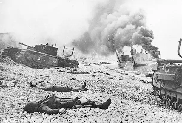 В 1942 году союзники совершили рейд на оккупированный французский порт Дьеп. Их силы включали 5 тысяч канадских военнослужащих, 2 тысячи английских, а также небольшое количество американцев и французов при поддержке танков и самолетов. Этот десант в конечном итоге оказался катастрофой, в которой погибло 3600 человек, было потеряно множество танков и самолетов, а союзники не сумели достичь своих целей. Впрочем, некоторые историки утверждают, что неудача помогла союзникам получить необходимый опыт и знания для окончательного вступления в войну в день Д.