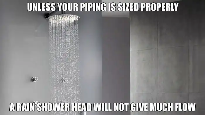 Поток воды из душа будет достаточно сильным, только если диаметр труб подобран правильно.
