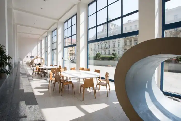 Это совершенно новое дополнение к пражской кофейной сцене. Кафе Jedna расположено в удивительных интерьерах самого большого функционалистического здания в Праге, где расположена Чешская Национальная галерея.