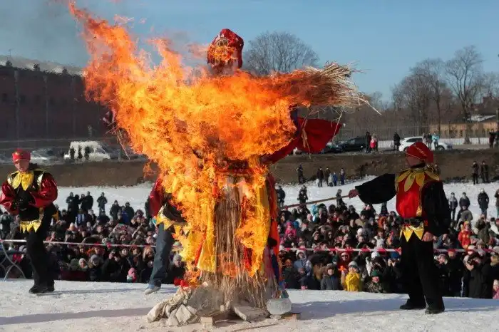 Соломенное чучело, которое разрывают на части или сжигают во время «проводов весны» – это не что иное, как отголосок обычая ритуального жертвоприношения. В современных условиях обряд не требует убийства. Но в давно минувшую эпоху место чучела занимал живой человек. Его смерть по мнению древних славян помогала умилостивить богов.