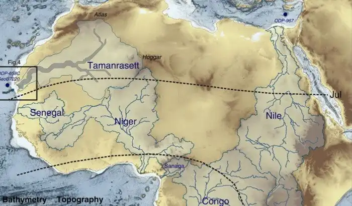 Французским исследователям удалось найти даже древнюю речную систему, подпитываемую большим количеством осадков. Ученые считают, что всю территорию Сахары пересекала река Таманрассет, впадающая в Атлантический океан в районе Мавритании.