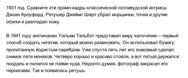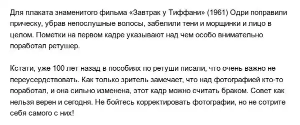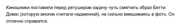 Глядя на некоторые постеры старых кинофильмов, начинаешь действительно удивляться, насколько у классических актрис правильные черты лица и естественная красота. Конечно же, в те годы и в помине не было фотошопа, но это вовсе не означает, что все эти снимки не подверглись ретушированию. Предлагаем вам посмотреть на фотографии голливудских актрис и представителей богемы до и после ретуши, которая делалась не так уж и просто, а также занимала немало времени.