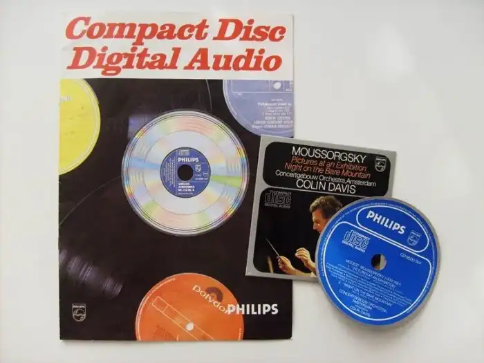 Сам стандарт (cтерео, 16-битовая разрядность, частота дискретизации — 44,1 кГц, емкость — 650 мб информации или 74 минуты звучания, диаметр диска — 12 см) торжественно увековечили в документе, названном «Красной книгой». На презентационном компакт-диске была записана «Альпийская симфония» Штрауса — ведь именно на примере оркестрованной классики лучше всего продемонстрировать качество звучания. Однако в массовое производство первыми, конечно, запустили поп-исполнителей — альбом «Visitors» группы ABBA и альбом Билли Джоэла «52nd Street». В 1983 году на рынке появились первые проигрыватели CD, а спустя год уже в «Оранжевой книге» Sony и Philips задокументировали технологию записи и хранения данных — CD-Rom. Тогда же появились и первые CD-плееры.