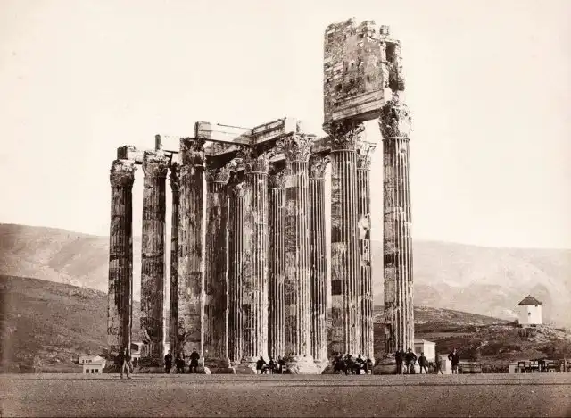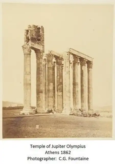 А вот и сама фотография, которая сделана в 1858 году. На ней храм Зевса Олимпийского в Афинах