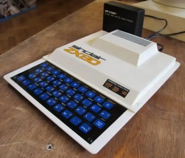 Однако момент истины наступил уже в 1980-м, когда молодая и малоизвестная британская компания Sinclair Research Ltd. представила компактный ПК стоимостью всего 99,95 фунтов стерлингов. Модель получила название ZX80 и была построена на 8-битном процессоре Z80A с тактовой частотой 3,5 МГц. Оперативки у Sinclair ZX80 было 4 Кбайт, и он мог работать только с черно-белым изображением. В качестве устройства ввода использовался обычный кассетный магнитофон, а для вывода изображения подходил любой телевизор.
