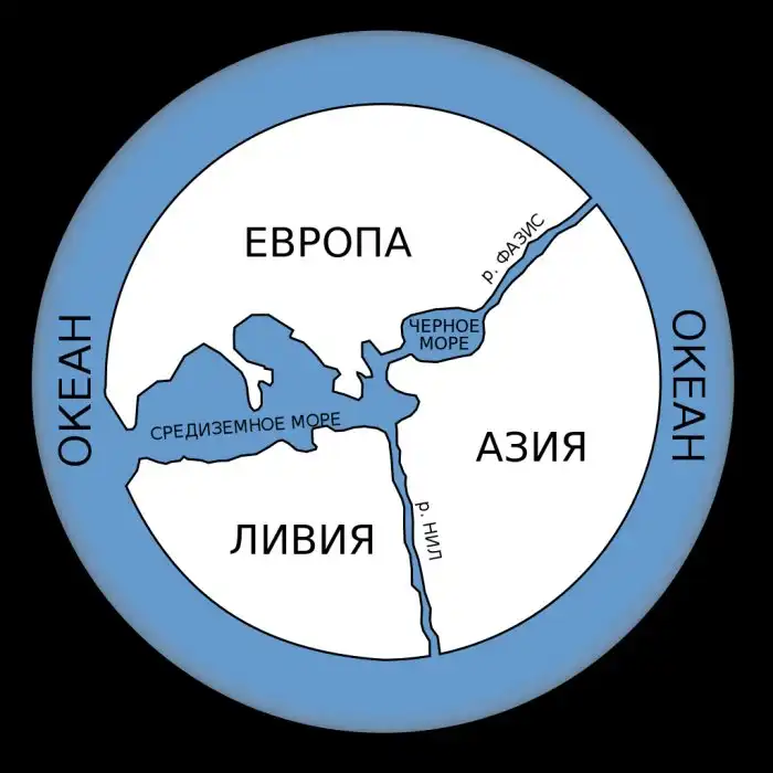 Схематично и доступно: Т – море, О – океан. Историки называют такой тип карт «Т-О».