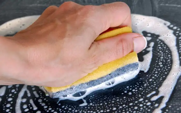 Да, даже средства для мытья можно мыть. Для этого надо развести четыре столовые ложки соды в литре воды и замочить там испачканные губки.