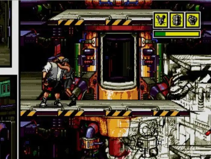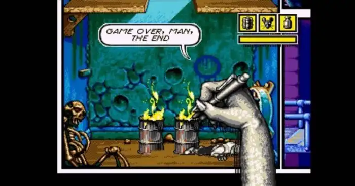 Проект Comix Zone – отличный пример того, что могут сделать фанаты, дорвавшись до работы мечты и получив возможность воплотить все свои творческие задумки. Авторы игры стилизовали все действо под комикс с его особыми установками и правилами. Каждый новый экран представлен отдельным кадром, на котором герой должен выполнить серию действий – уничтожить противников, передвинуть ящики, переключить рычаг и пр. Только после этого Тернер сможет перепрыгнуть на следующий кадр, используя белую рамку между картинками. Когда полоска из нескольких экранов-кадров заканчивается, герой спускается ниже, пока не доберется до конца страницы. На этом уровень заканчивается и начинается новый… снова с самого верхнего левого кадра.