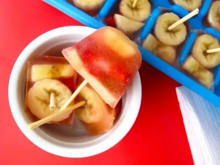 Можно заморозить компот, сок и любые фрукты с сахаром, чтобы пить охлажденными смузи или даже чай. Такие фруктовые кубики придадут вкус любому напитку.