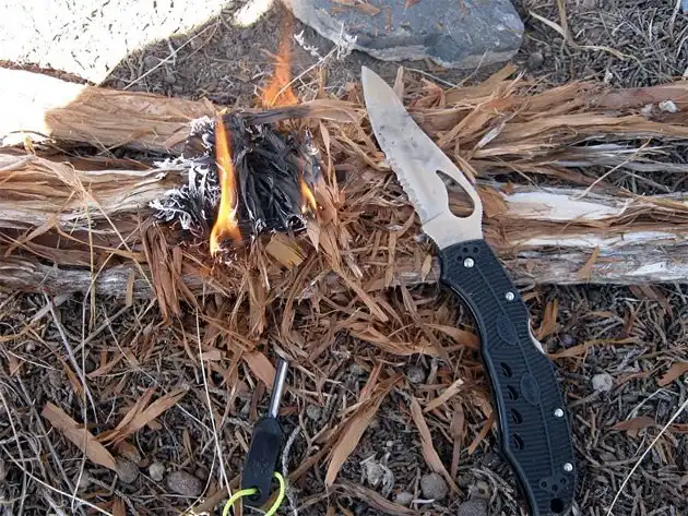 Кору деревьев можно использовать в качестве трута для розжига костра. Главное, чтобы она была сухой. Если же тебе выбирать особо не из чего, и в распоряжении есть только влажные экземпляры, бери что есть и дожидайся благоприятной погоды, чтобы высушить кору. В случае с сухой корой — ее остается только расщепить на волокна, например, потерев два куска друг об друга, и можно приступать к добыванию огня.