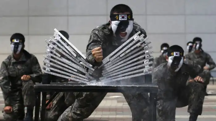 Республика Корея просто не может позволить себе расслабиться в присутствии такого агрессивного и непредсказуемого соседа. Призыв на постоянной основе и служат долго, до трех лет.
