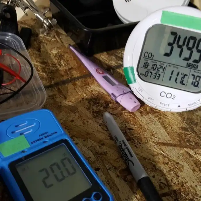 После того, как экспериментатор поселился в теплице, он стал вести дневник на своей странице в Instagram. Он делал замеры уровня углекислого газа и кислорода и понял, что дышит гораздо интенсивнее, чем растения выделяют кислород.