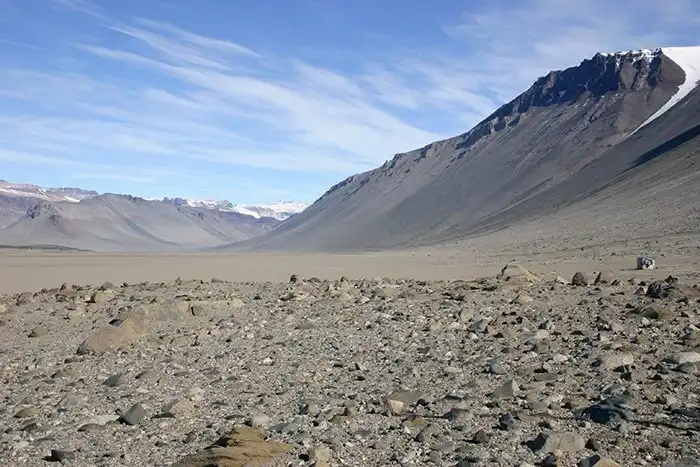 1% площади Антарктиды (это около 2500 кв.км) полностью свободны ото льда и снега. Такие места называют сухими долинами или антарктическими оазисами. Сухие долины - самые суровые пустыни на Земле. Здесь около 2 миллионов лет не было ни дождя, ни снега. Как утверждают австралийские ученые, из-за климатических изменений до конца XXI века 25% Антарктиды будет покрыто сухими долинами.