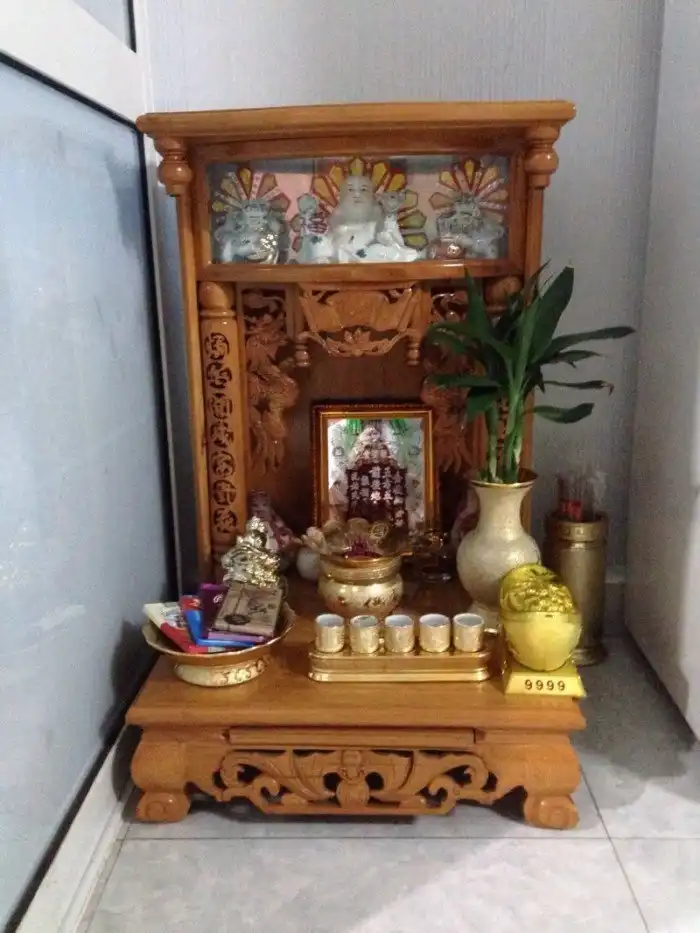 В домах они стоят как можно выше, чтобы молиться у них, почитать предков. А в магазинах, кафе, гостиницах и других публичных местах их ставят на первом этаже для привлечения удачи в бизнесе. У буддистов там стоит изображение Будды, а у тех, кто относит себя к атеистам или католикам там можно увидеть фотографии родителей, бабушек и дедушек. Каждый день на алтарях меняют фрукты, зажигают благовония.